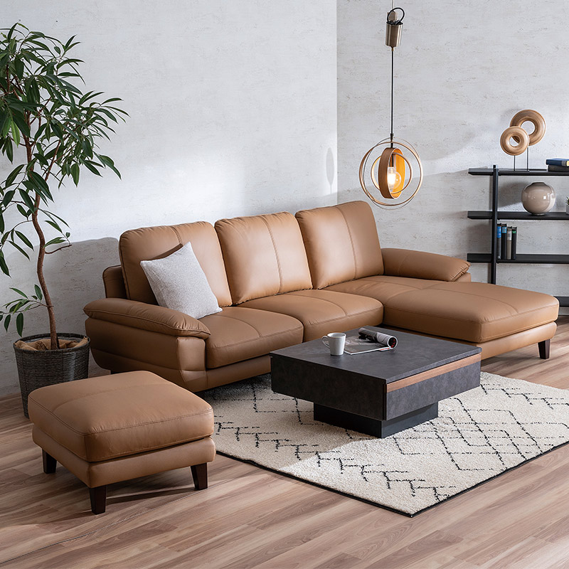 中材にはポケットコイルを採用し、ハードな感触。足を預けても沈み込みすぎることがなく、快適な使用感を実現します。