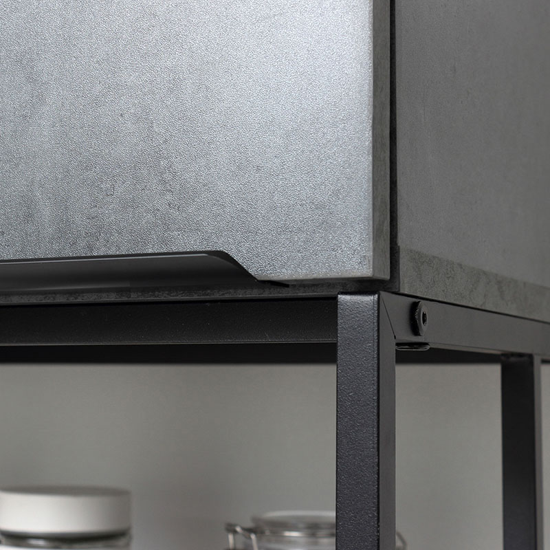 表面材:合成樹脂化粧繊維板(メラミン樹脂)、フレーム:金属(鋼)、表面加工:粉体塗装