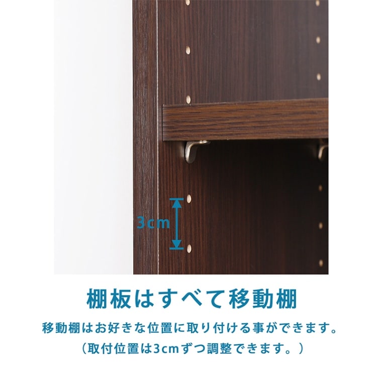 また、シライオリジナルの棚受け金具を使うことで、全ての棚板の高さを調節できるようにしました。