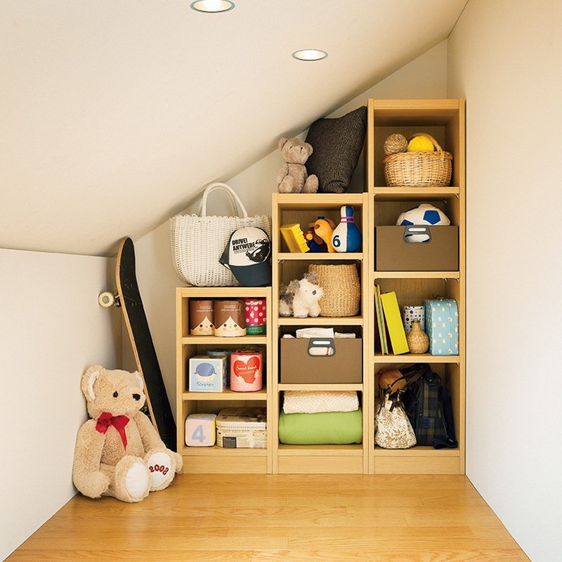また、シライオリジナルの棚受け金具を使うことで、全ての棚板の高さを調節できるようにしました。