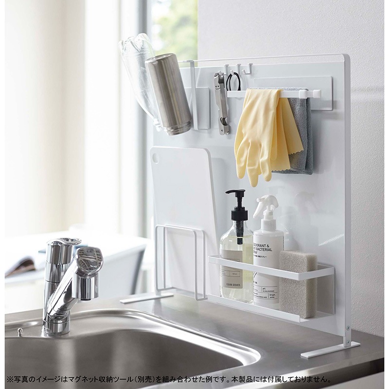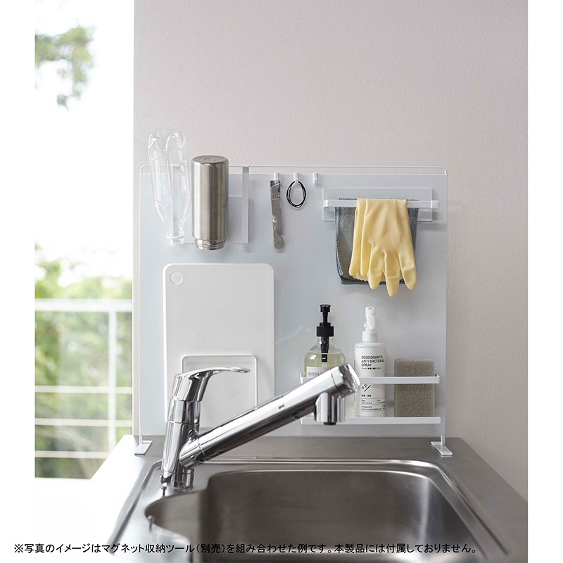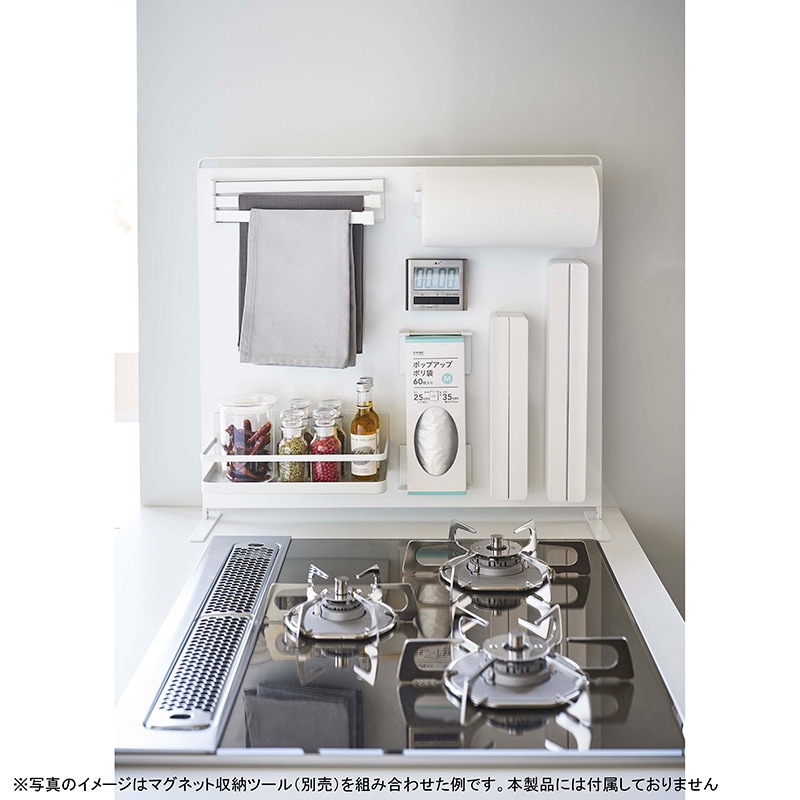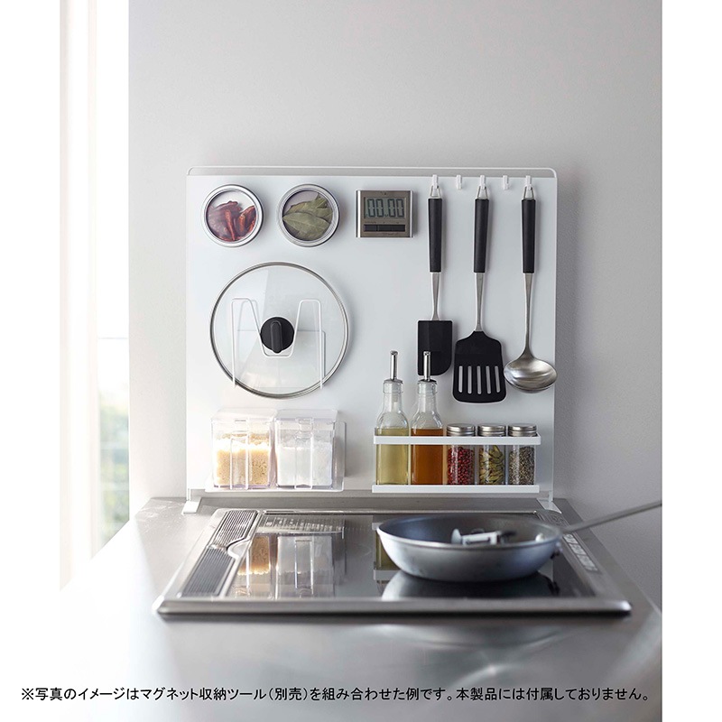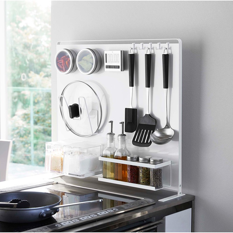 マグネット収納ツールを自由に組み合わせできるスチールパネルで、コンロやシンク周りのスペースを有効活用しながら、