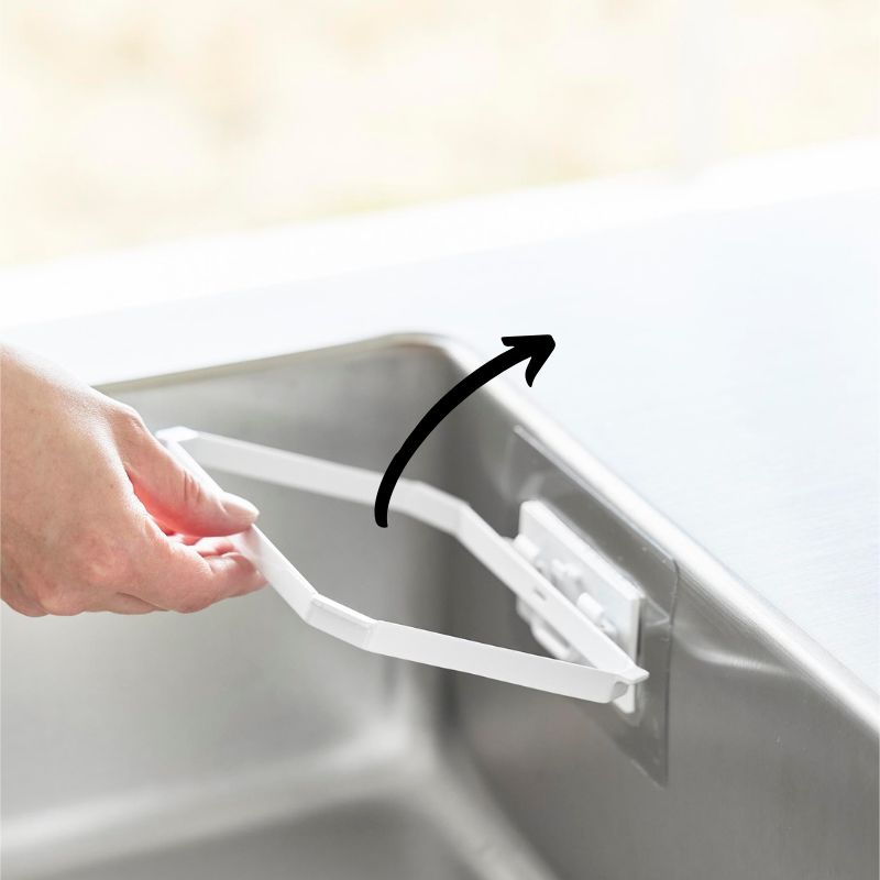 フィルムフックを使えば、シンクの中に簡単に取り付けられ、使わないときは折りたたんで省スペースに収納可能です。