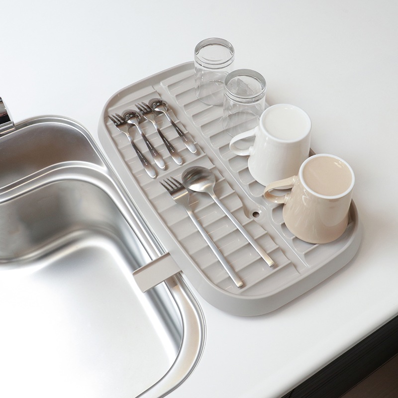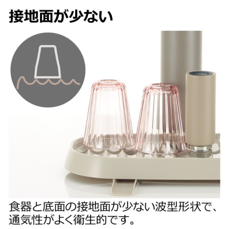 食器と底面の接地面が少ない波型形状のトレーです。