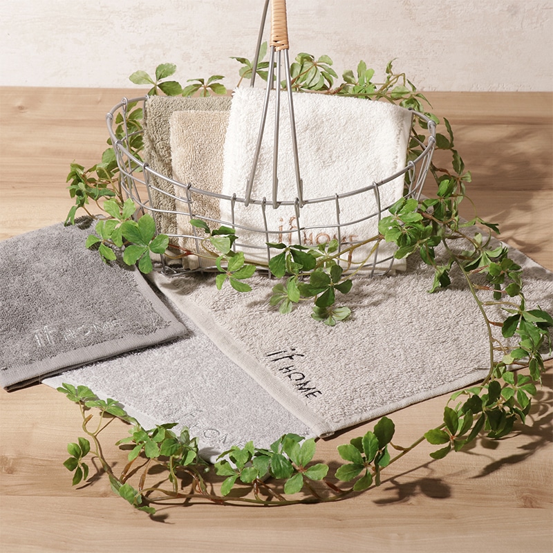 タオルの端には「if HOME」の刺繍がワンポイントとして入っており、シンプルながらも上品な印象に。