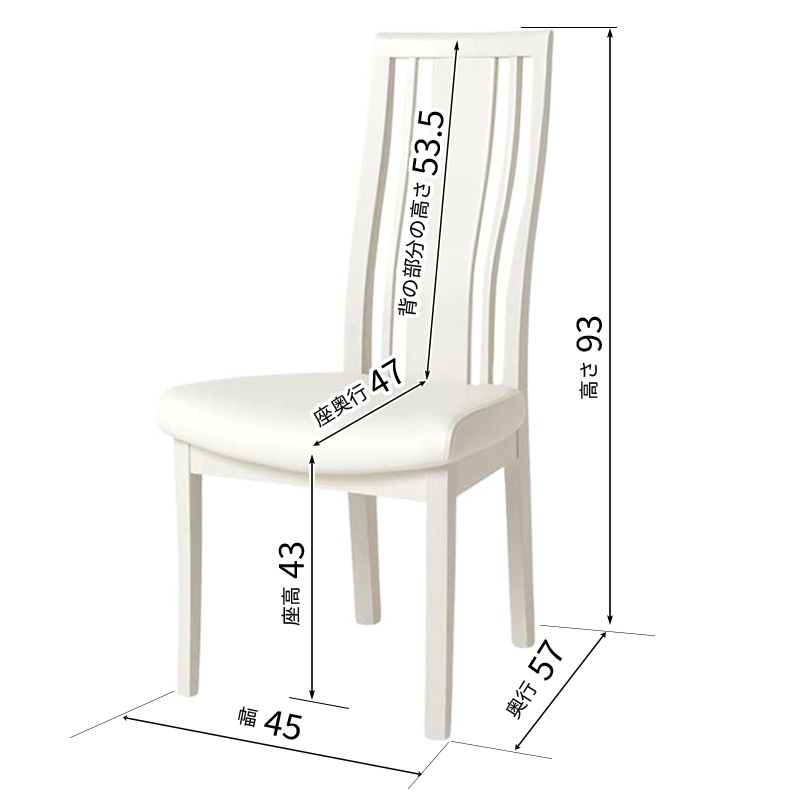 ダイニングチェアは幅45㎝×奥行57㎝×高さ93㎝(座面高さ43㎝)、