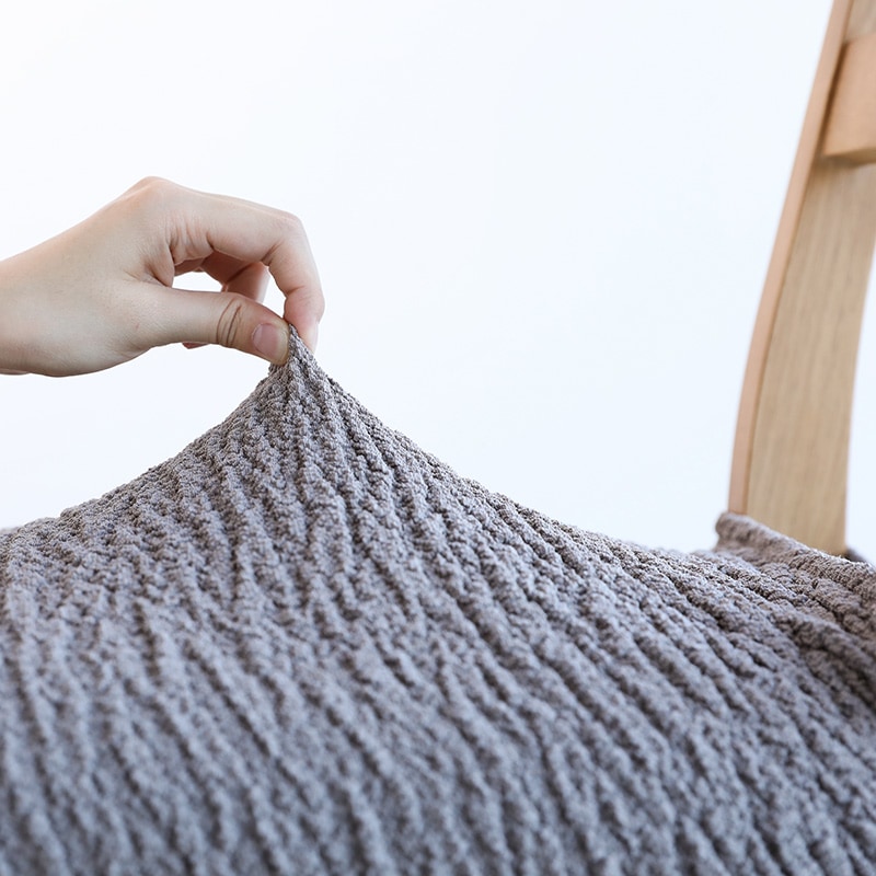 伸縮素材のため、チェアに引っ張りながら被せるだけと取り付けも簡単。