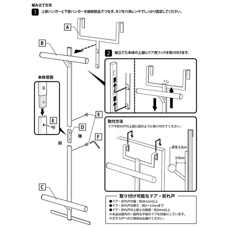 ハンガー1つあたりの耐荷重は約5kg、合計で約10kgまで対応可能。
