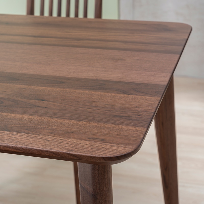 天板はやわらかな丸みを帯びたデザインで、見た目にも圧迫感がなく、空間を広く感じさせてくれます。さらに、天板の裏には反り止め加工が施されており、長くご愛用頂けます。