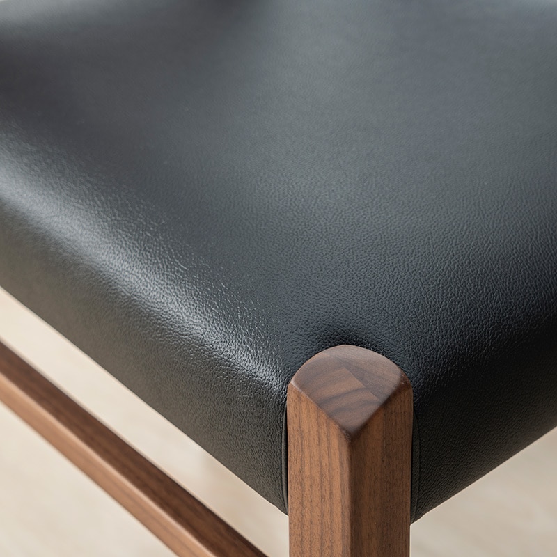背もたれは体のラインに沿ってゆるやかにカーブしたハイバック仕様で、背中をしっかり支えながら自然な姿勢を保てるため、長時間座っても疲れにくい設計です。食事のひとときはもちろん、読書やくつろぎの時間も快適にお過ごしいただけます。座面にはお手入れのしやすいPVC素材を採用しており、飲み物や食べ物をこぼしてしまってもサッと拭き取るだけで清潔な状態を保てます。日常の忙しさの中でも手間なく使える実用性の高さが魅力です。