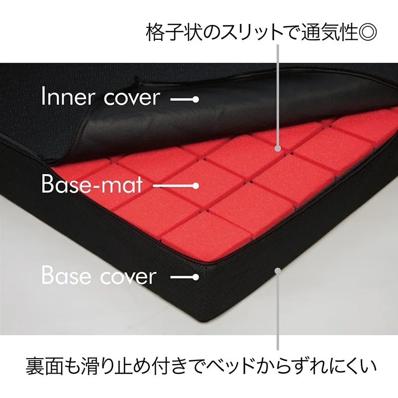 通気性の高い生地を使ったベースカバー。裏面はズレにくい滑り止め付き。