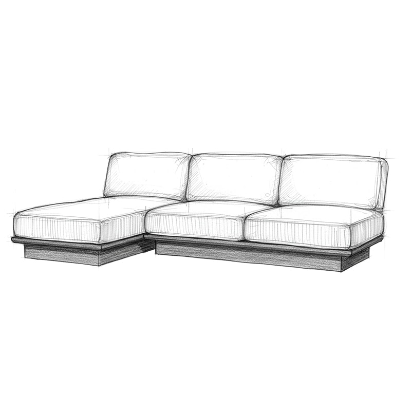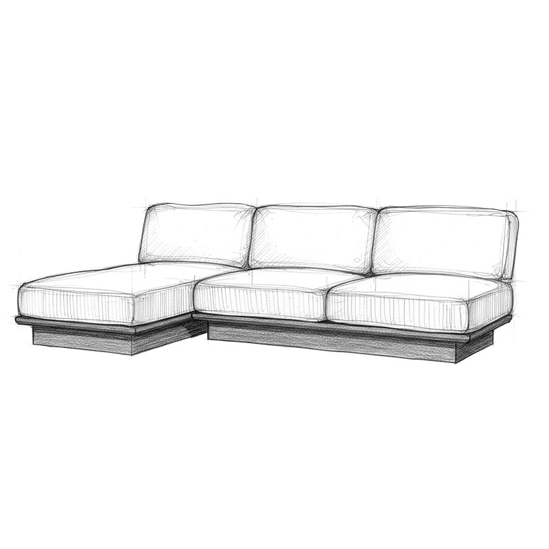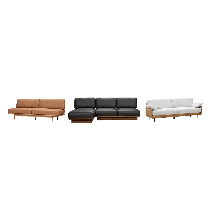 アームレス仕様のため左右を気にせず自由にレイアウトでき、2Pソファとシェーズを組み合わせれば足を伸ばしてくつろげるカウチスタイルも楽しめます。