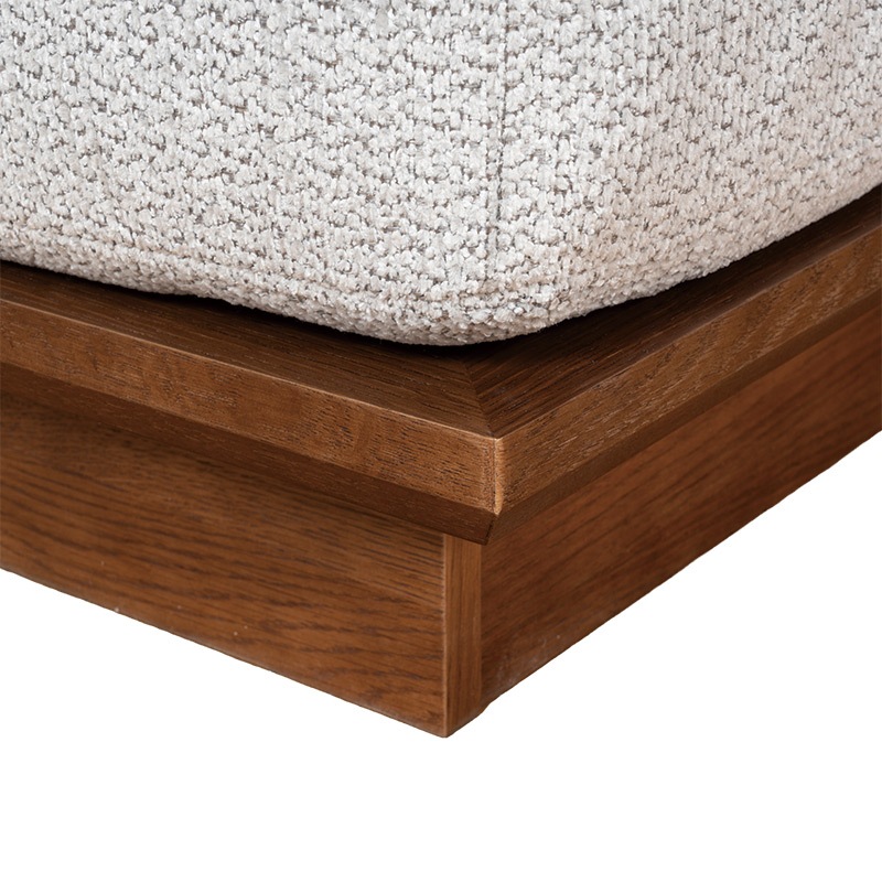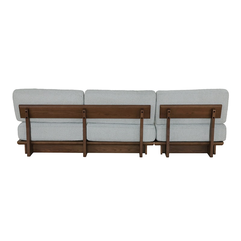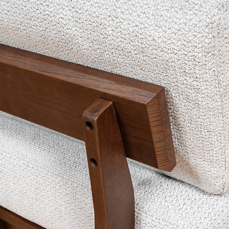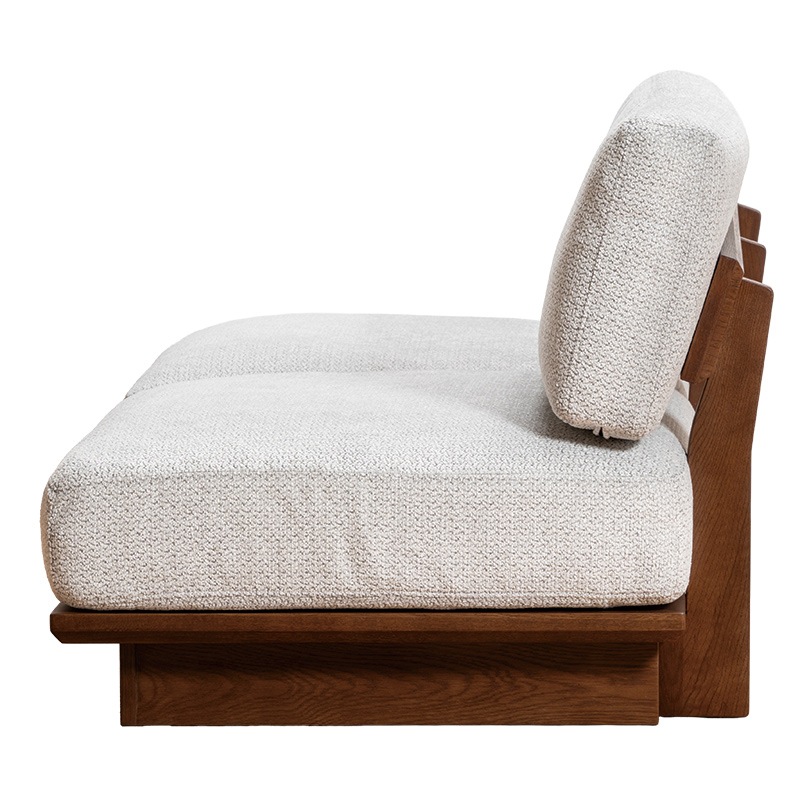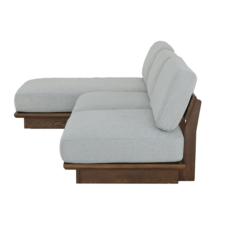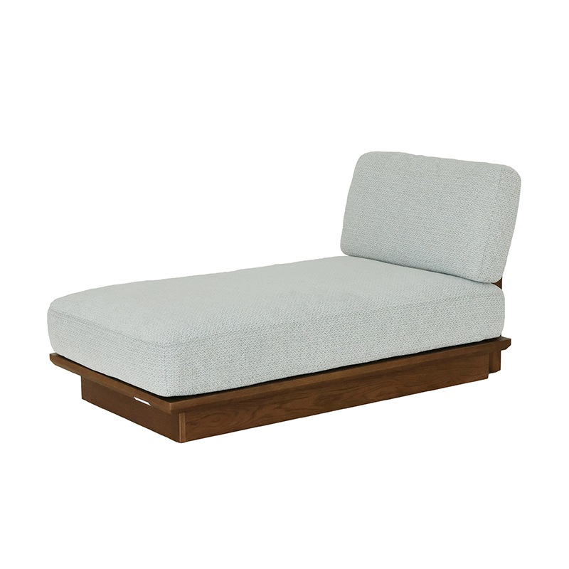 背もたれまで木フレームで仕上げたロータイプのシェーズロングソファは、シンプルなデザインの中に重厚感を感じさせる存在感のある一台です。