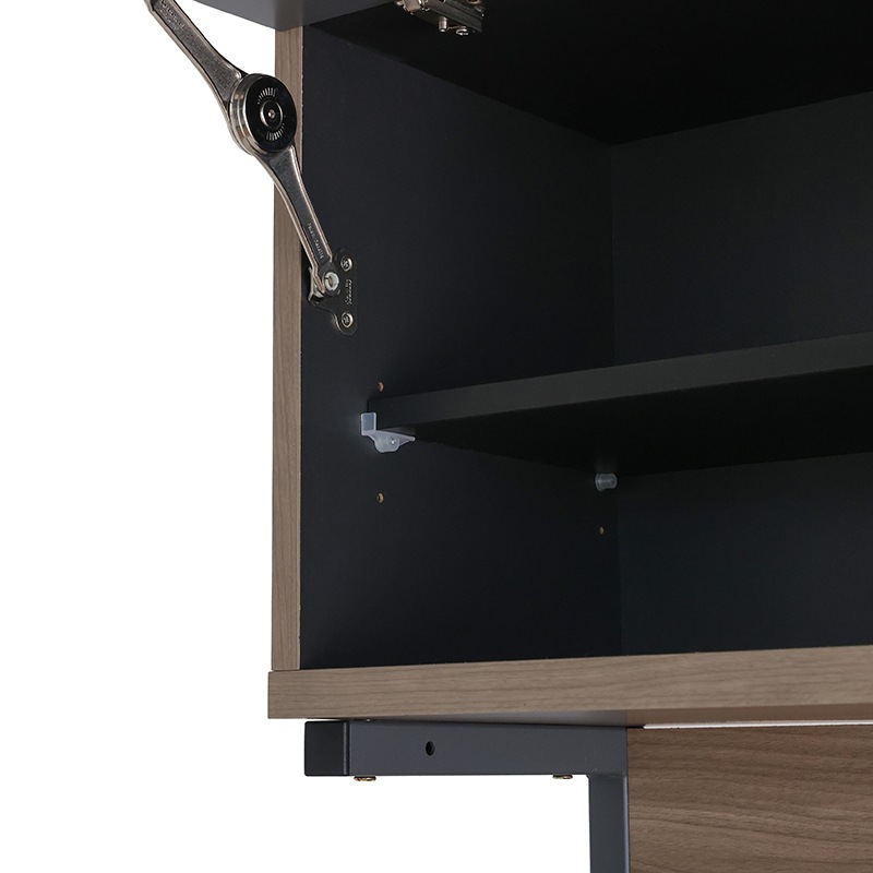 上部の扉収納には可動棚が付いており、調味料や食器などの高さに合わせて調整できるため、必要なものをひと目で見渡せてスムーズに取り出せます。