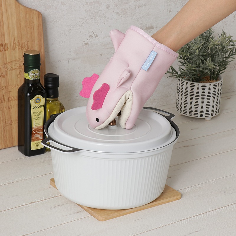 愛らしいウーパールーパーが、調理中の熱から手をしっかり守ります。