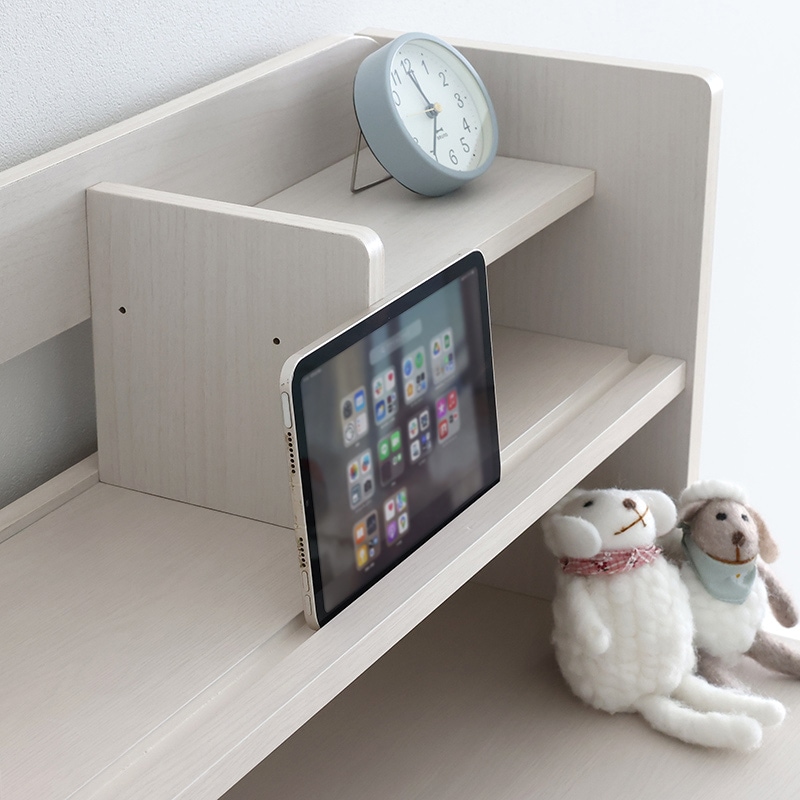 上置きはタブレット学習に対応しており、端末を立てかけて画面を見やすい角度に保てるため、オンライン授業や動画学習も快適です。