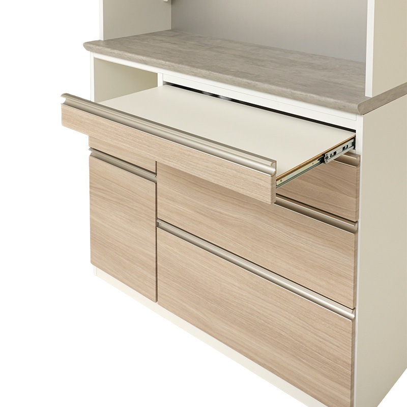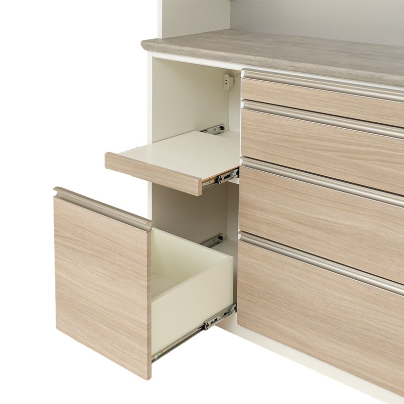 また、下台右側2段目から最下段の引き出しはソフトクローズ機能付きのため、引き出しを押すだけでスッと閉めることができます。