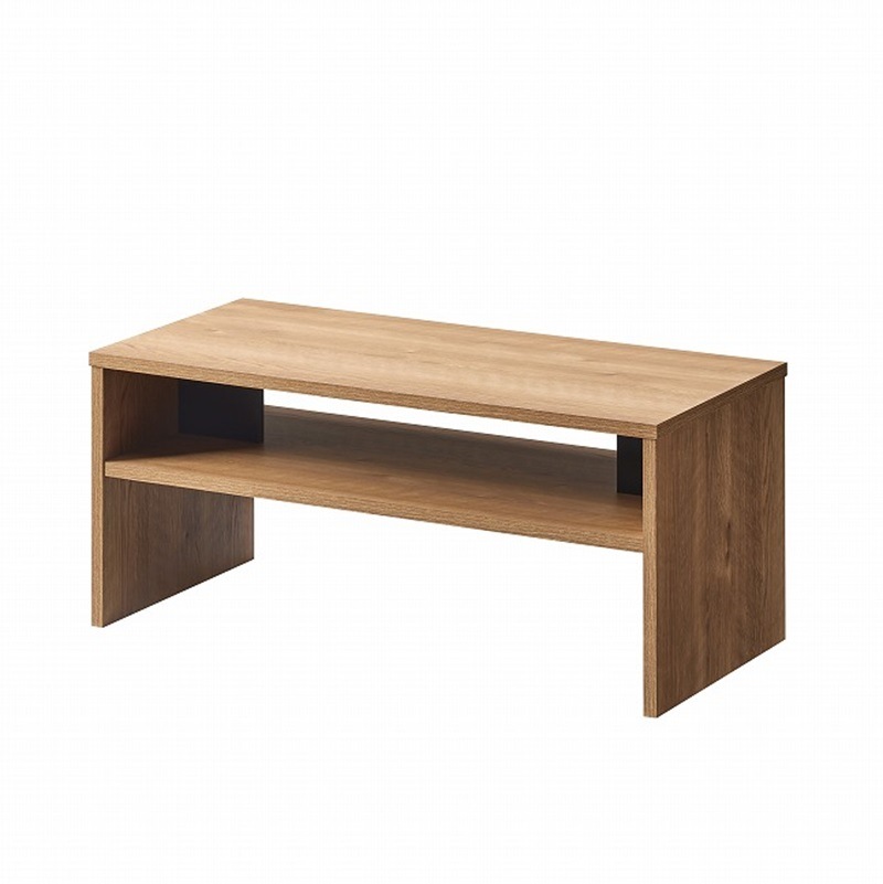 天板下にはオープン収納スペースを備えており、リモコンや雑誌、小物をすっきりと整理可能。日常使いの快適さを考えた実用性あるテーブルです。