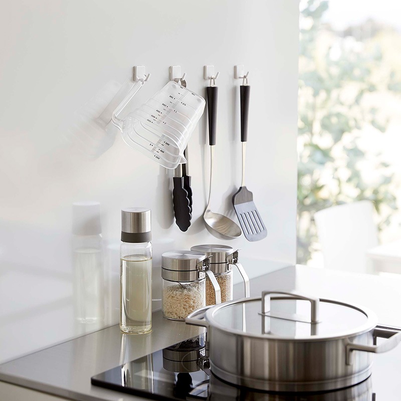 冷蔵庫やキッチンの壁面に浮かせて収納可能。