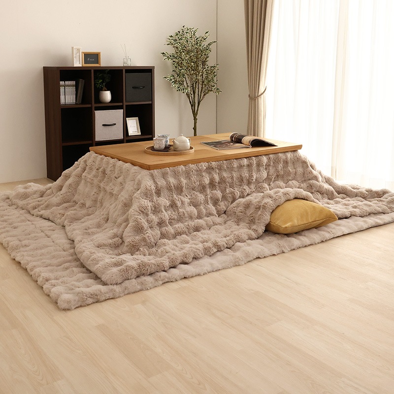 ラビットファータッチの柔らかな質感に包まれる贅沢なこたつ掛け布団です。