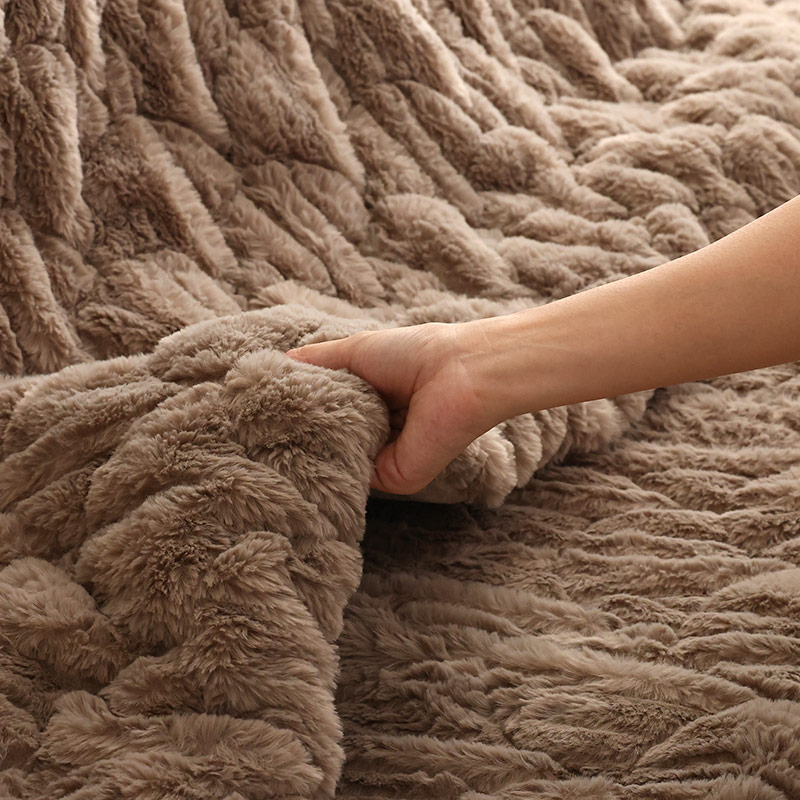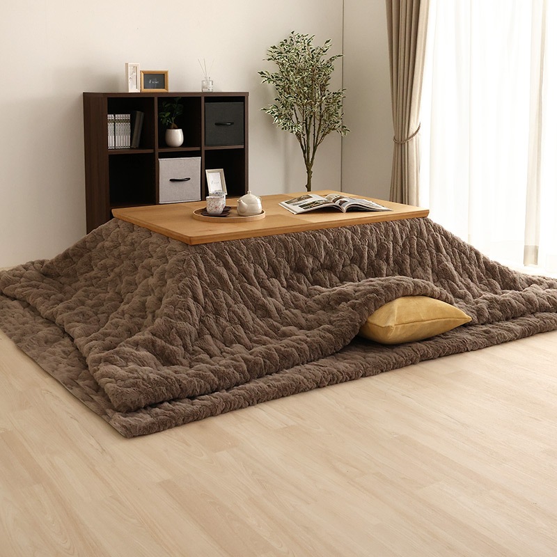 凹凸感のあるもこもことした生地を採用し、見た目にも温かみのある表情を持ちながら、全体はすっきりとした印象に仕上げたこたつ掛け布団です。