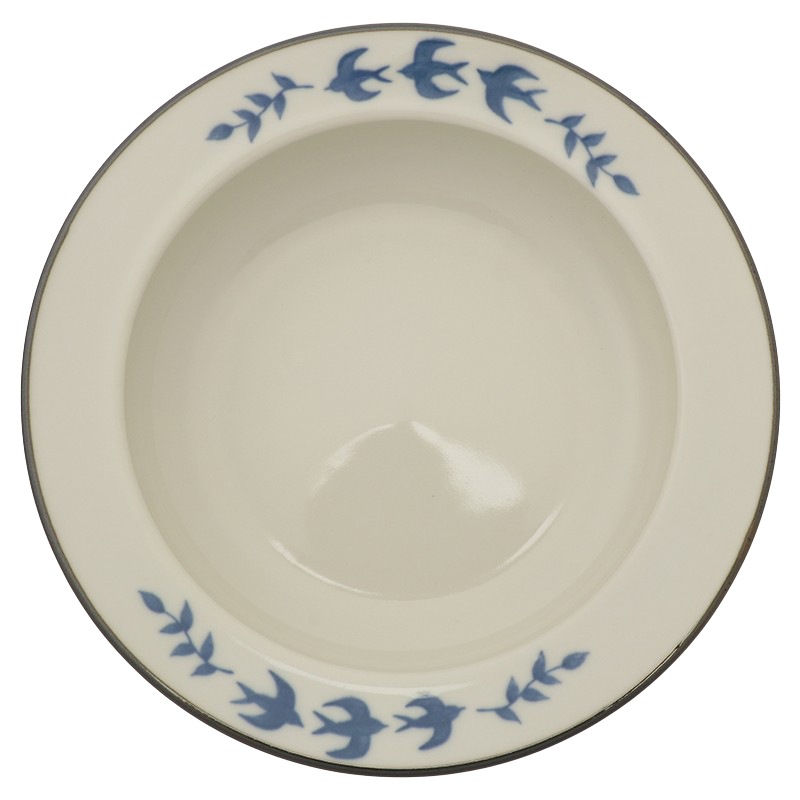 クリーム色の釉薬に藍色が映え、ツバメがデザインされた愛らしい仕上がりとなっています。