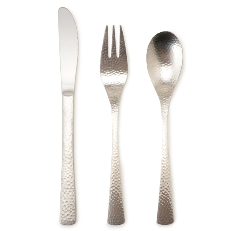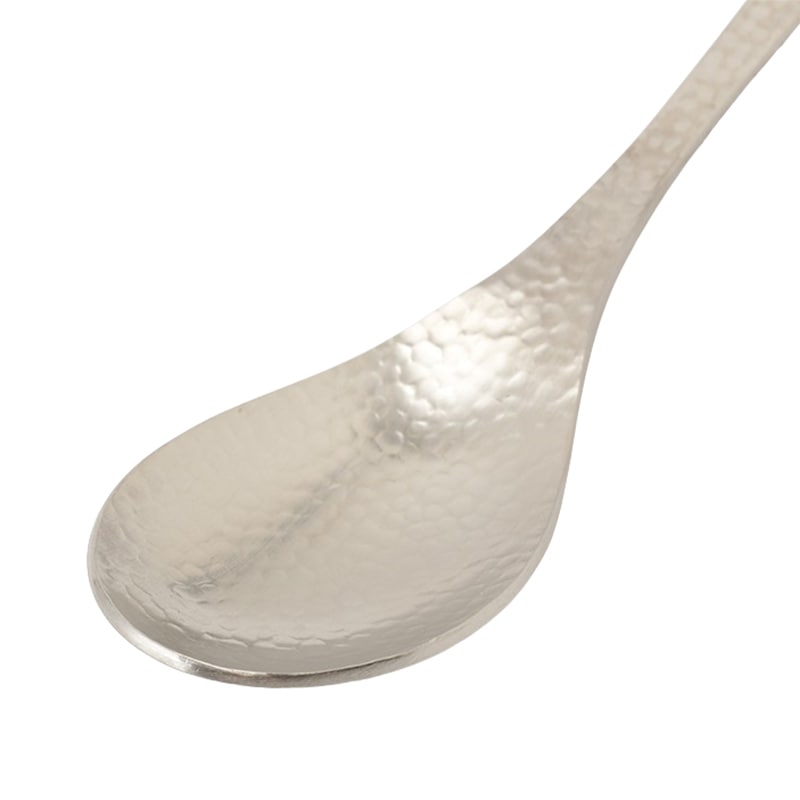 スプーン全体に施された細かな凸凹が光を柔らかく反射し、