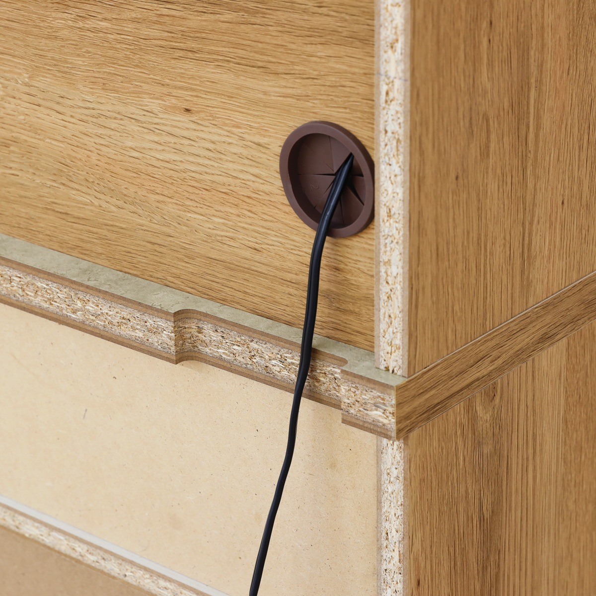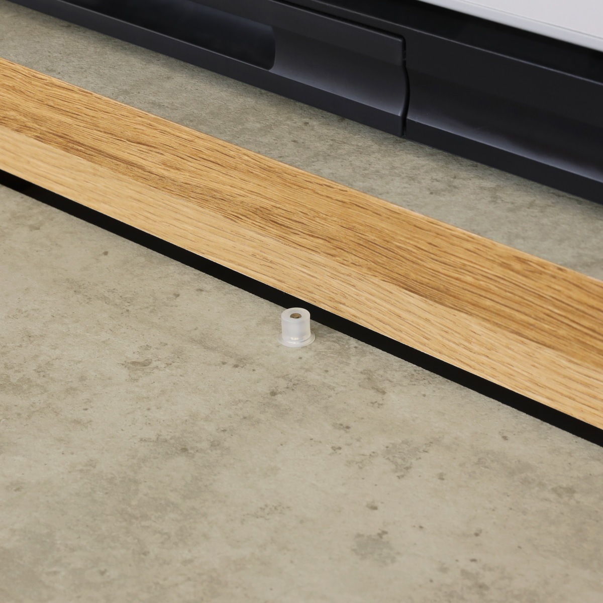 中天板が背面に少し出ているので、壁との間に隙間ができます。配線を通したり、巾木をよけたりできる構造です。