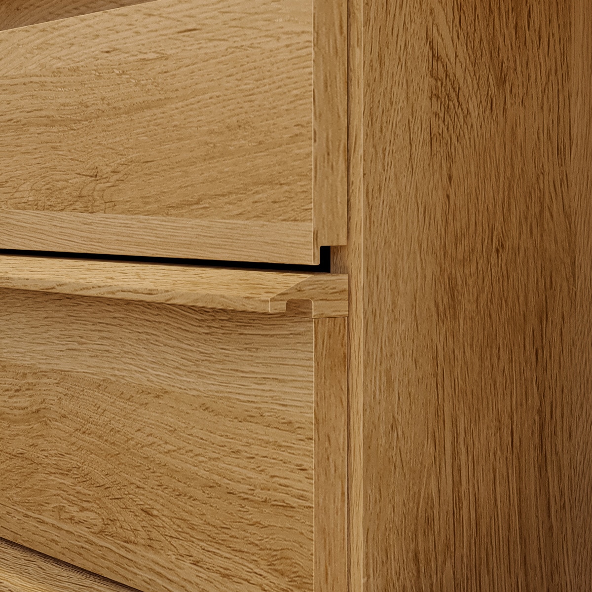引き出しにはフルスライドレールを使用。全部引き出せるから、奥にしまった物も取り出しやすくなっています。