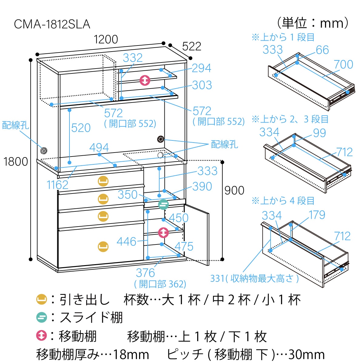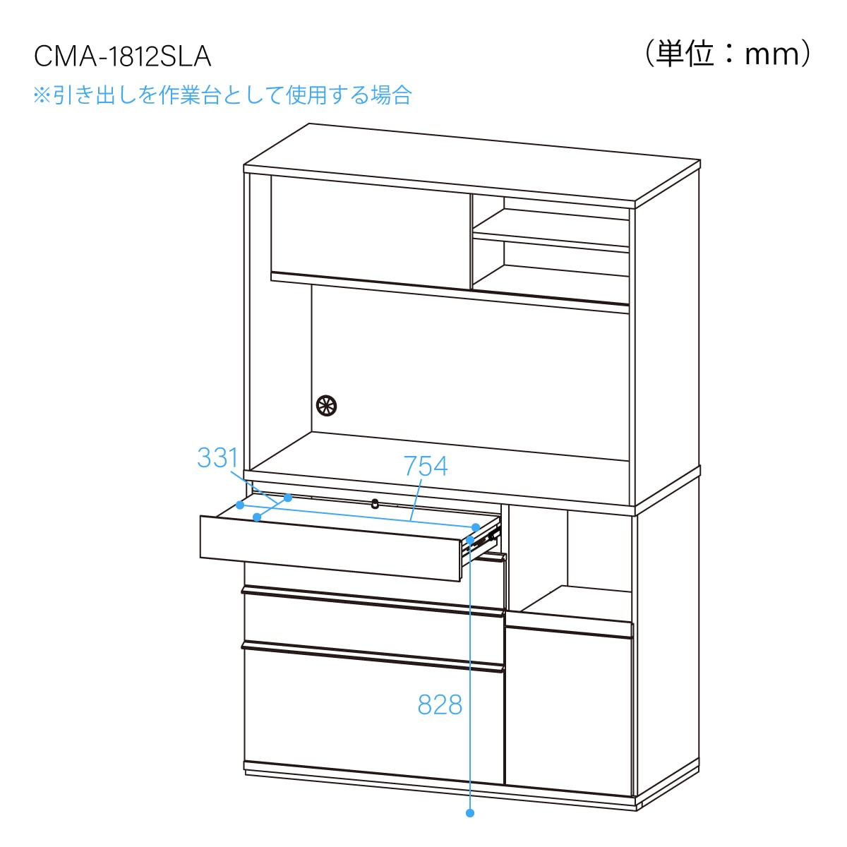 ※下段引出の重量目安は20kgまでです。お皿等の収納時は重量にご注意ください。