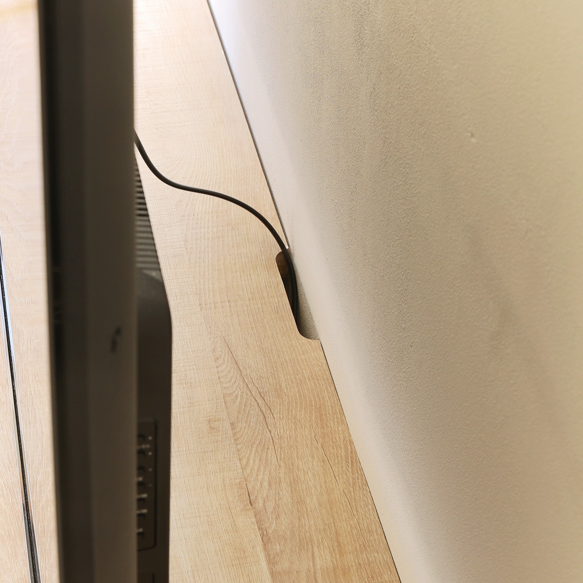 背面には配線穴を設けています。壁にぴったりつけることで、テレビ裏にほこりが溜まらないようにしてくれます。