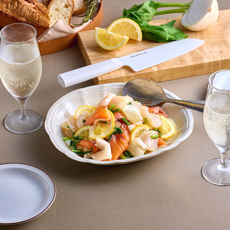●食材本来の見た目、味を損なわない刃から金属イオンが出ないので、リンゴやレタスなどの切り口が変色しにくく、サラダやデザートなどをキレイに仕上げることができます。また、食材に金属の嫌な臭いがつきません。
