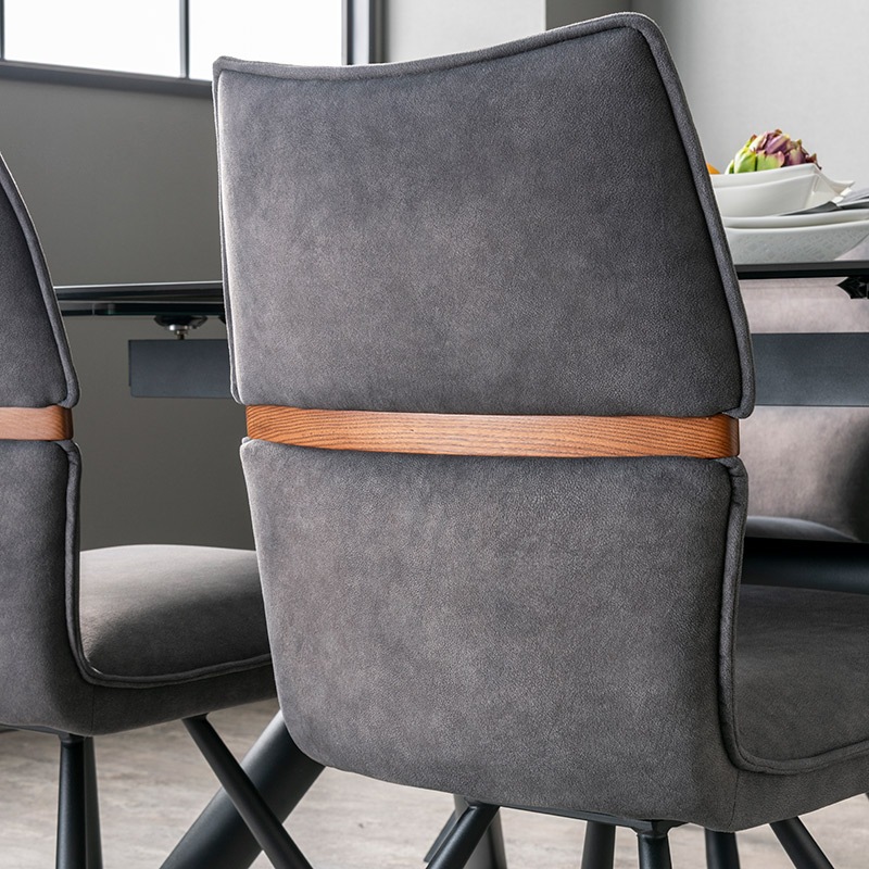 異素材を組み合わせたデザインのため、セラミック天板と木を掛け合わせたテーブルにも、スチール脚を用いた木製テーブルにも自然につながり、コーディネートの幅を広げます。